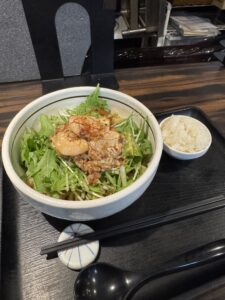 今年から辛味噌にはまりまして、奥にはひっそりとチャーマヨ丼がフレームイン